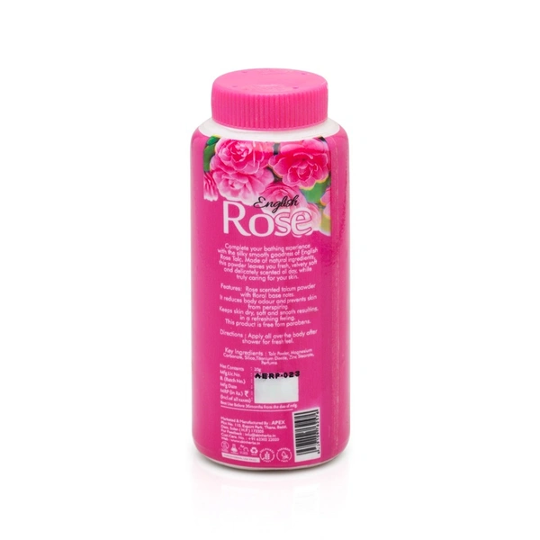 2. The English Rose Talc features a delightful rose scent with subtle floral base notes, creating a refreshing and feminine aroma that lingers on your skin. This talcum powder is designed to reduce body odour and prevent excessive perspiration, ensuring that you stay dry and comfortable throughout the day.